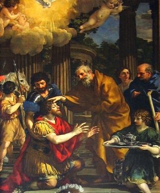 Depois Saulo teve uma visão com Ananias, um velho e respeitado cristão da cidade, na qual ele o curava. Enquanto no mesmo instante Ananias tinha a mesma visão em sua casa. Compreendendo sua missão, o velho cristão foi ao seu encontro colocando as mãos sobre sua cabeça fez Saulo voltar a enxergar, curando-o. A conversão se deu no mesmo instante pois ele pediu para ser Batizado por Ananias. De Damasco saiu a pregar a palavra de Deus, já com o nome de Paulo, como lhe ordenara Jesus, tornando-se Seu grande apóstolo.