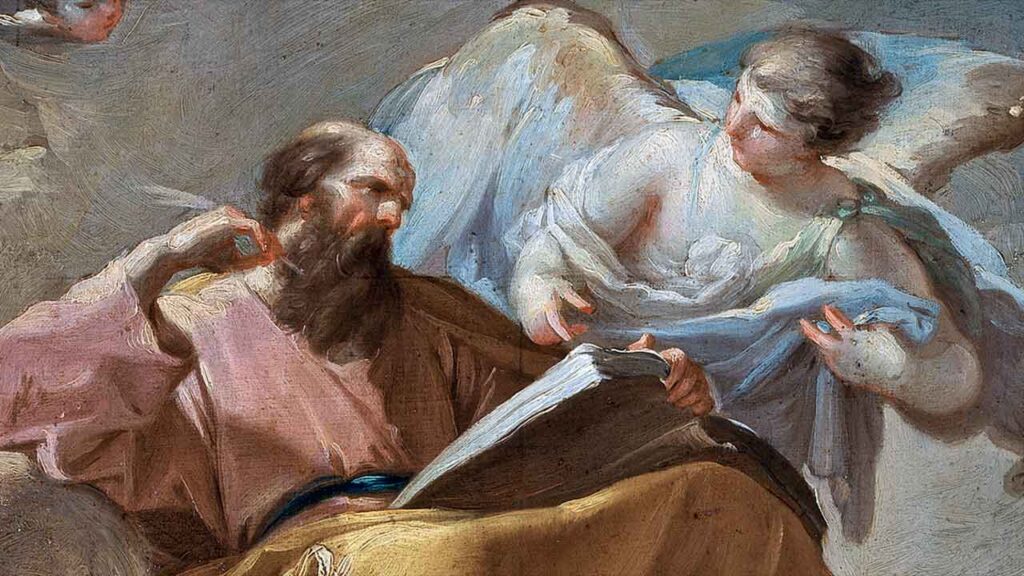 Na descrição dos quatro seres do Apocalipse – águia, boi, leão, homem – São Mateus é associado àquele com aspecto de homem.