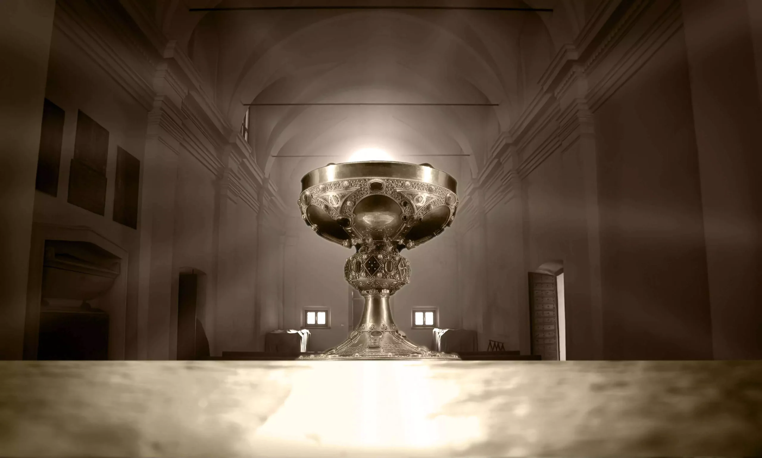 A narrativa dos evangelhos destaca o momento em que Cristo repassou o cálice com vinho para seus apóstolos, destacando a sua presença no pão e no vinho ali consumido. Morto no dia seguinte, o cálice que ele abençoou desperta a curiosidade por mais de dois milênios.
