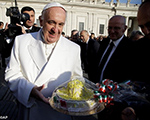 Papa recebe bolo de mexicanos por seu aniversário de 79 anos, a ser comemorado amanhã, 17/12