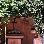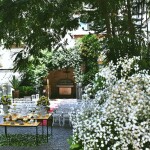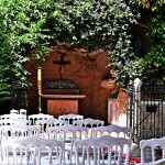 O espaço para batizados com a Gruta Nossa Senhora de Lourdes ao fundo.