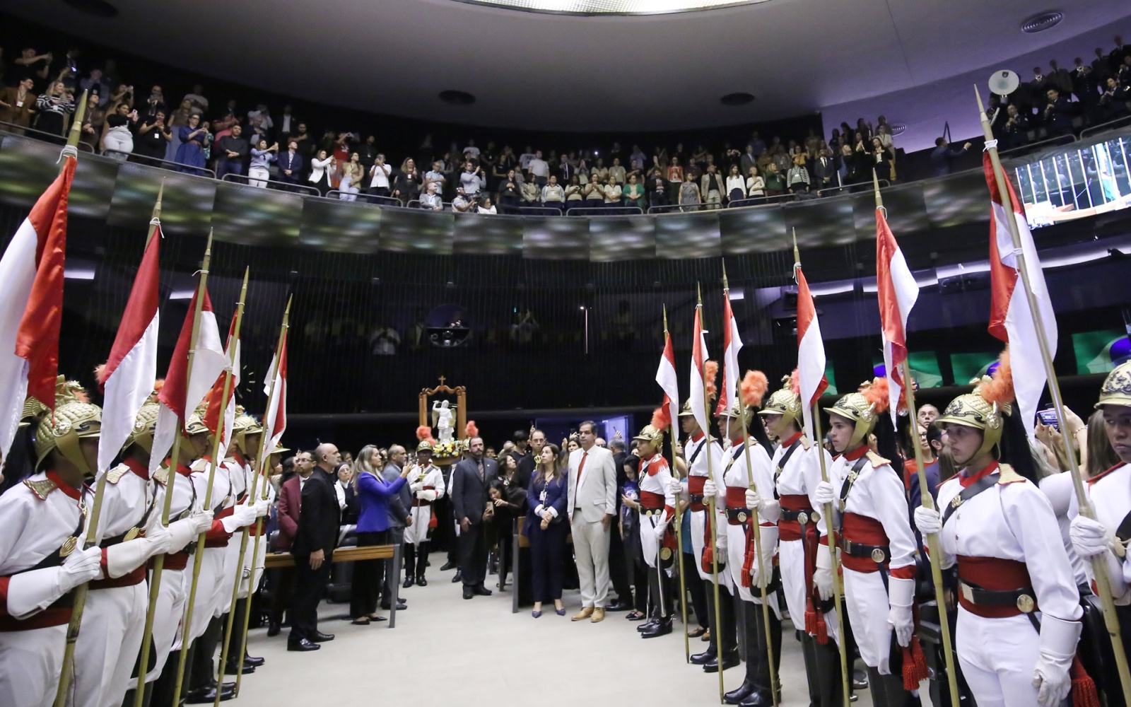 “É precisamente neste tempo marcado por desafios espirituais e morais que o Brasil acolhe nesta casa legislativa aquele cuja tradição cristã reconhece como defensor da fé, o guardião da Igreja e o comandante da milícia celeste”, disse a deputada federal Simone Marquetto (MDB-SP), requerente da sessão solene. Ela destacou que “a presença” das imagens de são Miguel Arcanjo e de Nossa Senhora Aparecida, que tem o título de Generalíssima do Exército Brasileiro, no “parlamento representa a nossa devoção e, mais do que isso, é uma convocação, um chamado à responsabilidade espiritual, à unidade nacional e à coragem moral de construir um Brasil fundado sob valores eternos”.