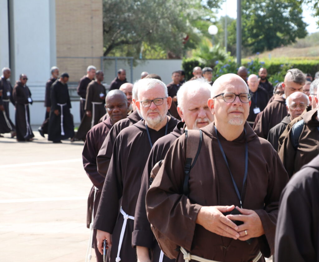 Com esta oração e como irmãos e peregrinos do amor, os capitulares, liderados pelo Ministro Geral, saíram da capela em procissão em direção à Aula Magna, local onde serão realizadas as principais sessões do Capítulo a partir de agora. Alguns símbolos da nossa fé (velas, cruz, incenso e o Livro dos Evangelhos) acompanharam este momento de procissão e recitação da Ladainha dos Santos. Com a entrada na Aula Magna, o Ministro Geral declarou aberto o Capítulo Geral de 2024.