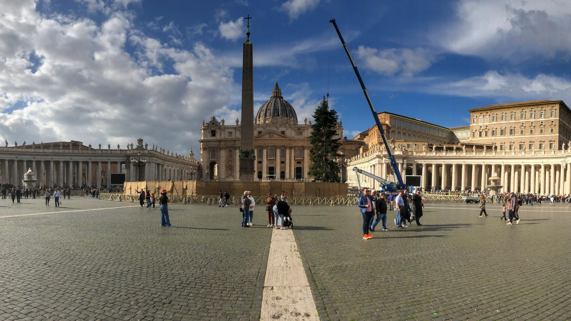 A Praça de São Pedro está com uma movimentação diferente nos últimos dias. Além de turistas e peregrinos que normalmente circulam pelo local, o espaço ganhou a presença de caminhões, guindastes, tapumes e operários. Eles trabalham no início da montagem da decoração de Natal do Vaticano.