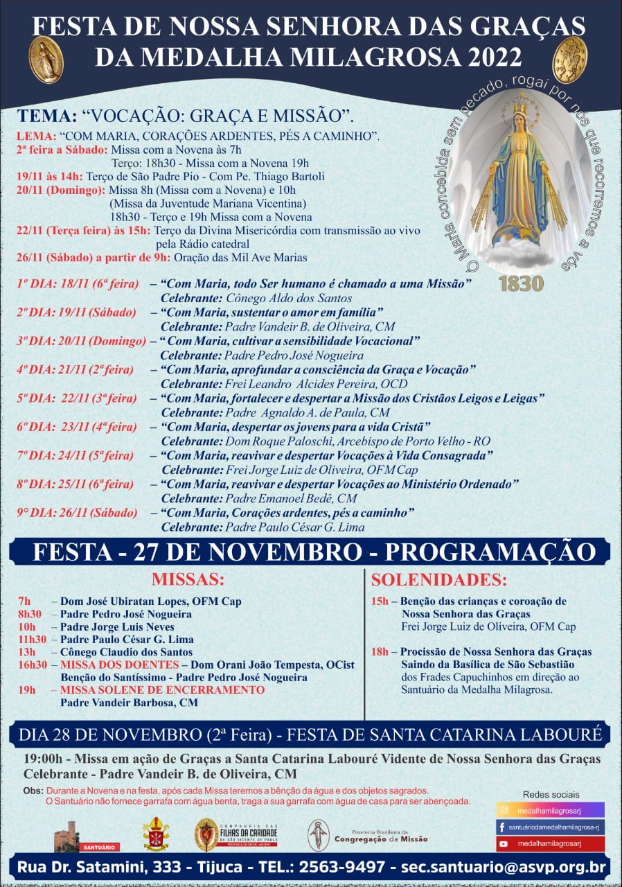 A festa de Nossa Senhora das Graças será celebrada em 27 de novembro