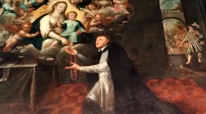 Segundo o Vatican News, a devoção do Rosário remonta ao ano de 1212, quando são Domingos de Gusmão, durante sua permanência em Toulouse, na França viu a Virgem Maria e ela lhe entregou o rosário, como resposta a uma de suas orações, como arma para combater a heresia albigense. Outra experiência com o rosário ocorreu em 1571, quando os muçulmanos faziam pressão nas fronteiras da Europa e foi formada uma Santa Liga para impedir seu avanço.