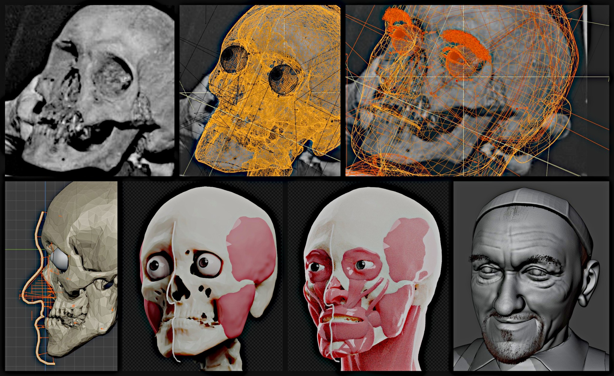 “Uma vez que nós tínhamos as imagens do crânio, a gente enviou apenas as imagens para oito especialistas da área médica, de cirurgia e odontologia no campo forense. Eles foram unânimes em dizer que era um homem em idade avançada, de ancestralidade europeia e que tinha uma deficiência na região da maxila, além de uma protuberância na região da mandíbula. Utilizamos sete imagens do crânio para fazer a reconstituição no campo tridimensional”, explica Moraes.