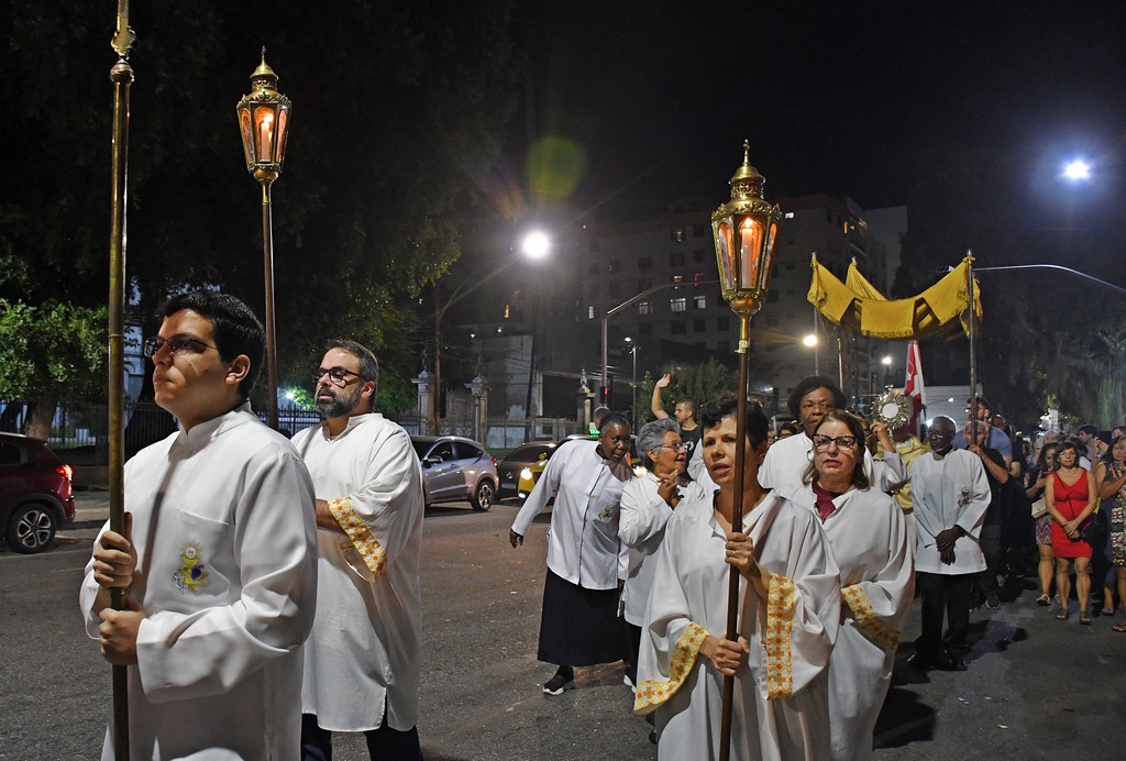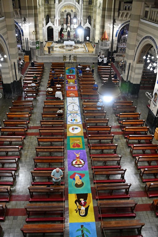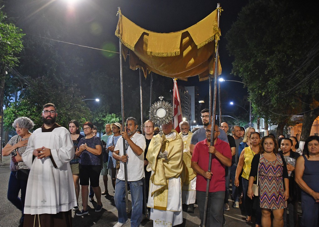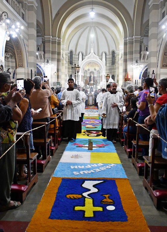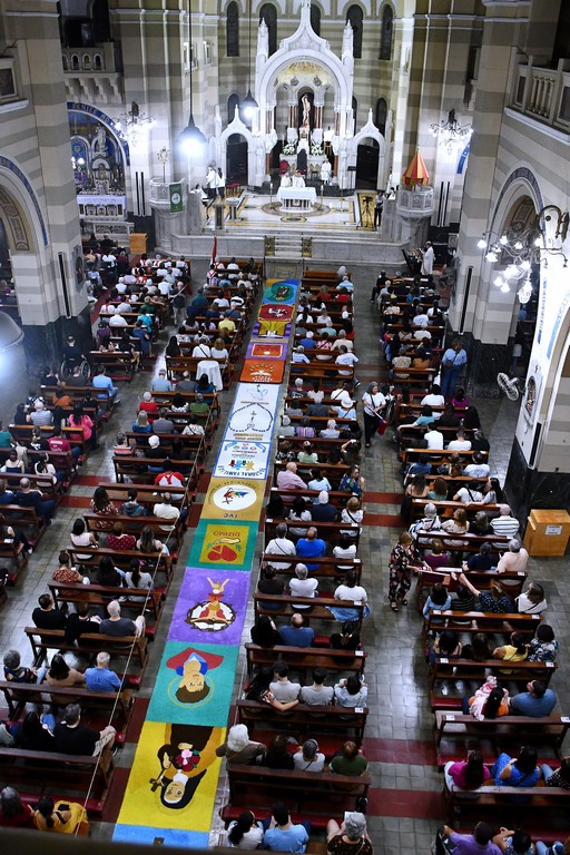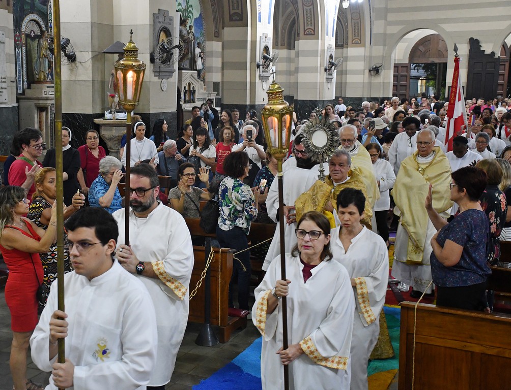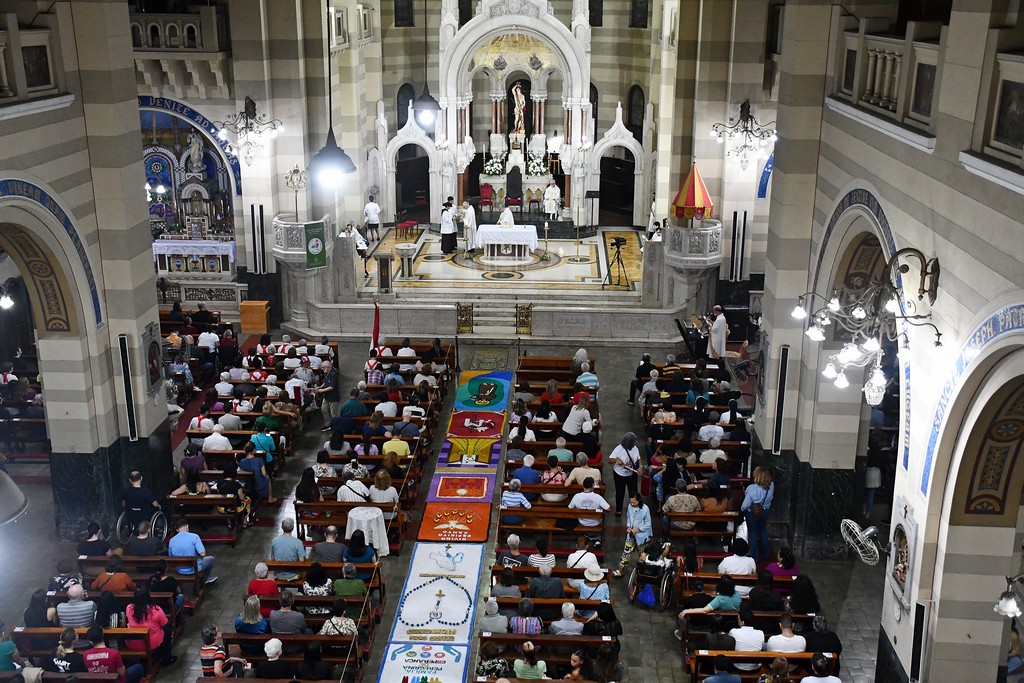 A solenidade de Corpus Christi no Santuário Basílica de São Sebastião, realizada no dia 19 de junho, foi um evento repleto de espiritualidade e beleza. As fotos capturam momentos sublimes, onde fiéis se reuniram em uma celebração de fé e devoção. Os tapetes, cuidadosamente confeccionados por voluntários, adornou o caminho por onde a procissão passou, criando um espetáculo visual que encantou a todos os presentes.