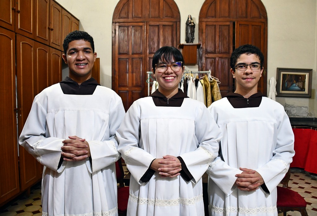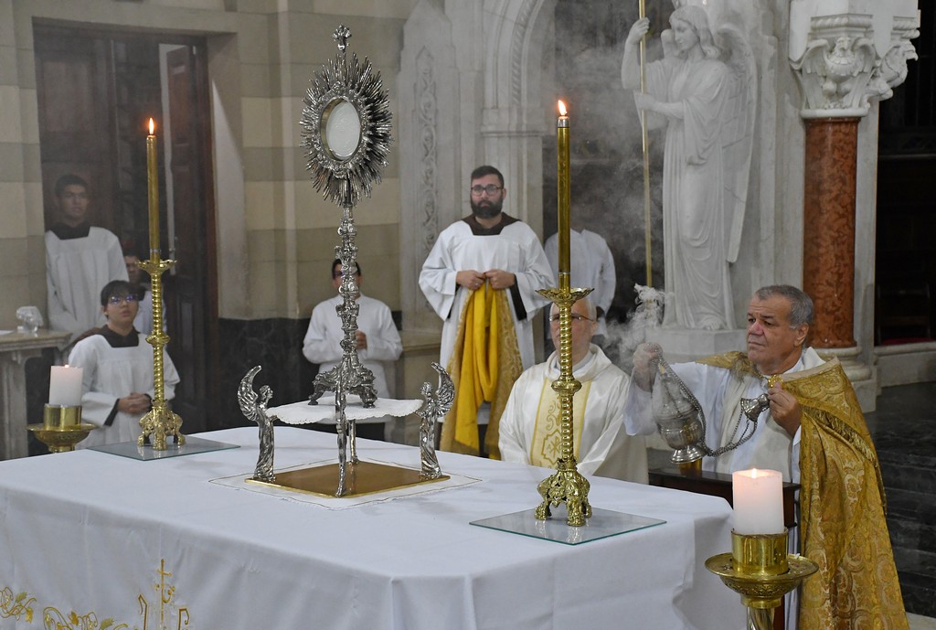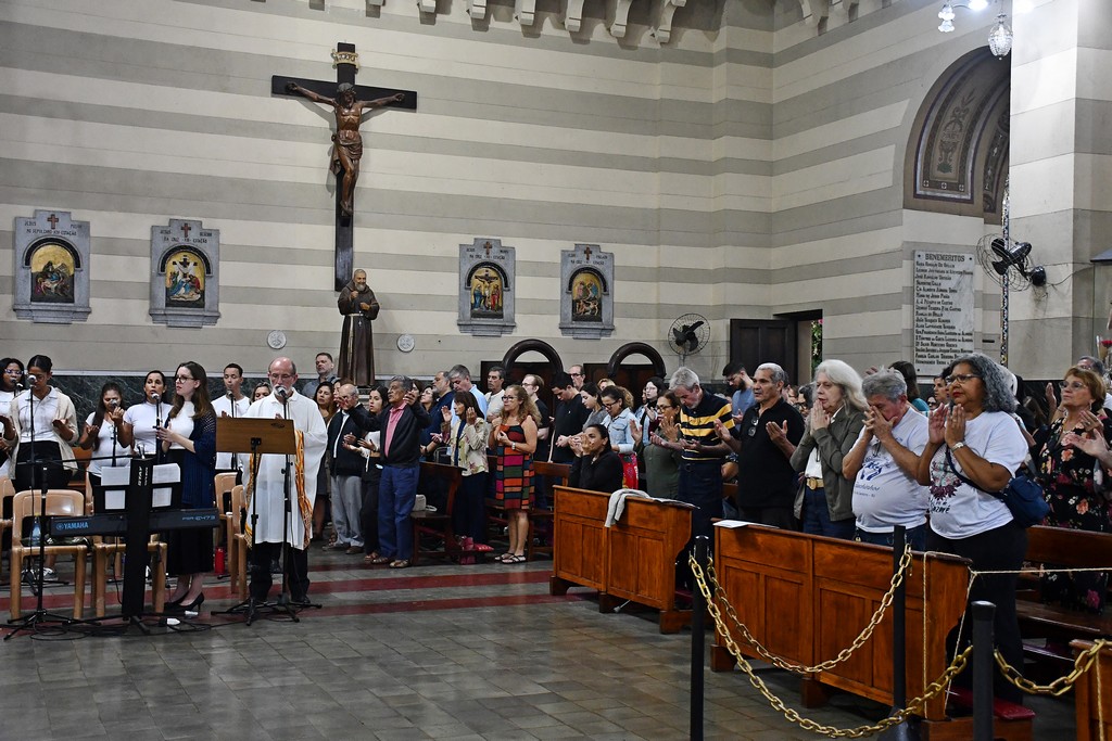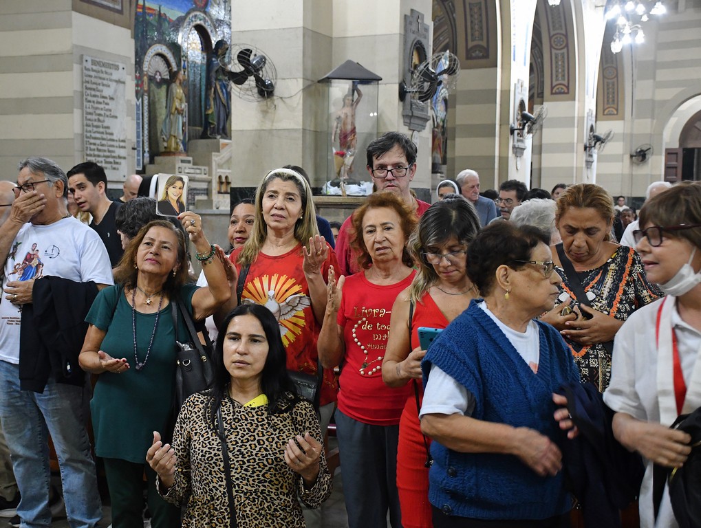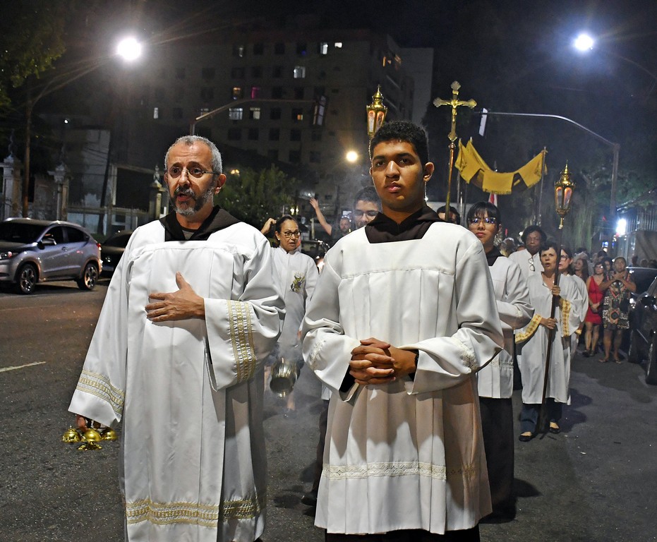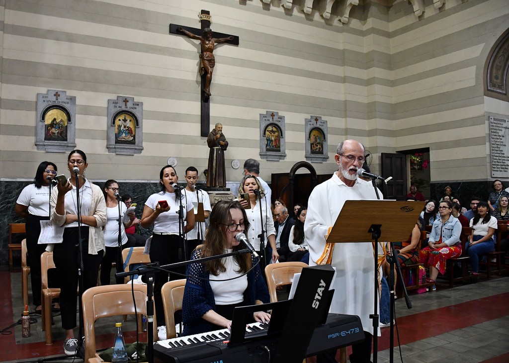 As imagens também mostram a imponência da Basílica, com sua arquitetura majestosa e detalhes que refletem a riqueza da tradição católica. A expressão de serenidade e reverência nos rostos dos participantes revela a profundidade do momento vivido. A solenidade, marcada por cantos litúrgicos e orações, foi uma demonstração de união e esperança, fortalecendo a comunidade e renovando o espírito de todos que participaram.