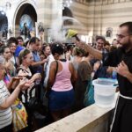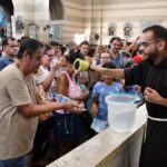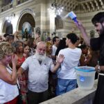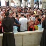 Após as missas, os frades se preparavam para aspergir a água benta na população.