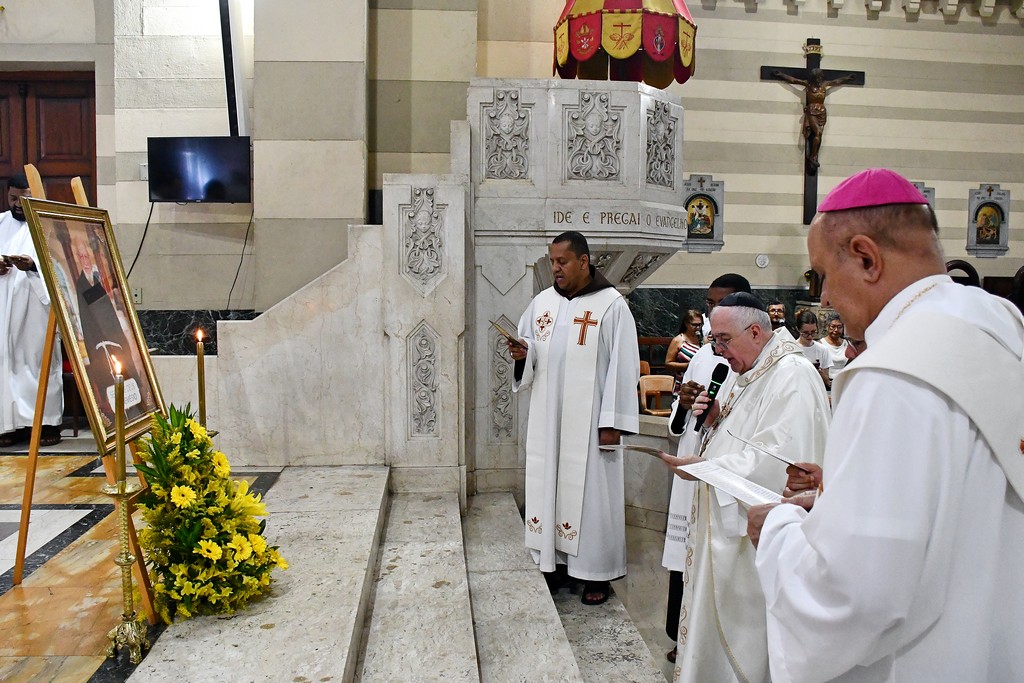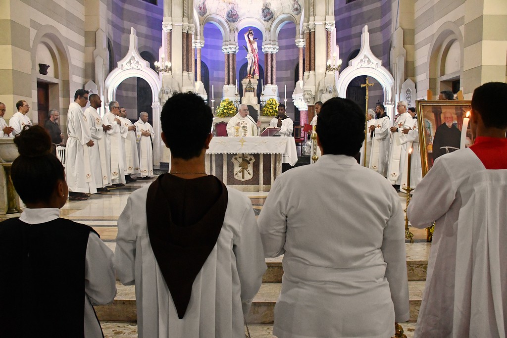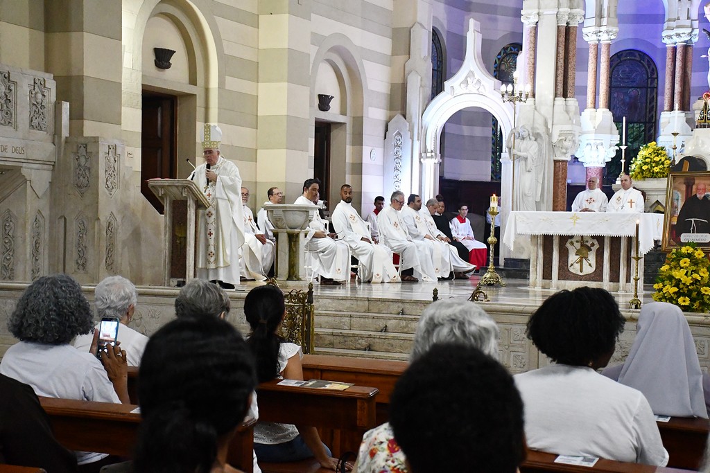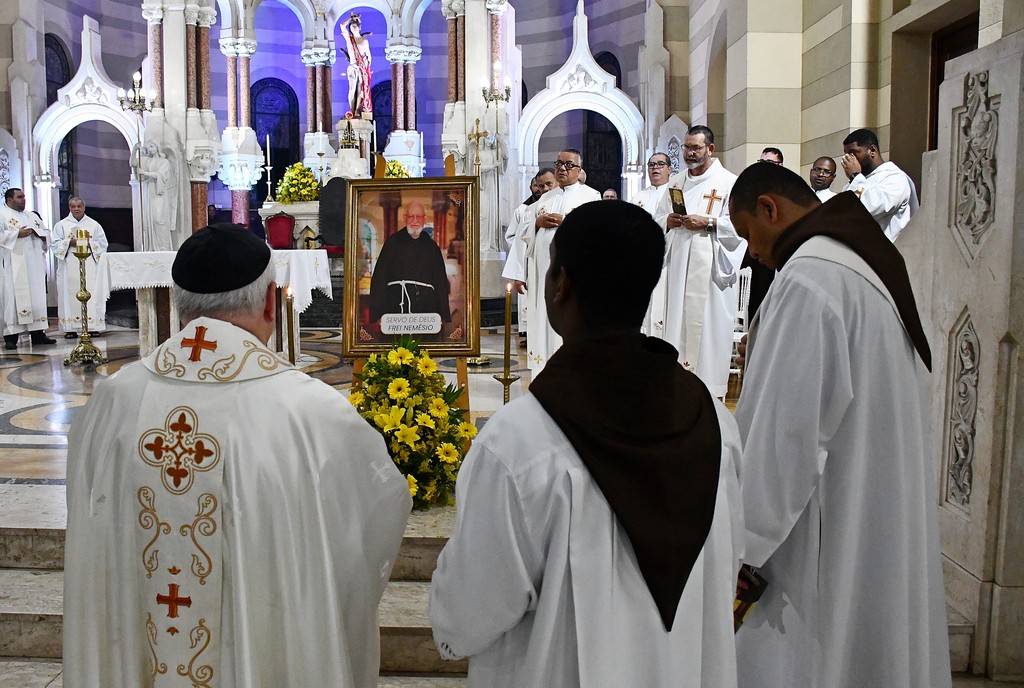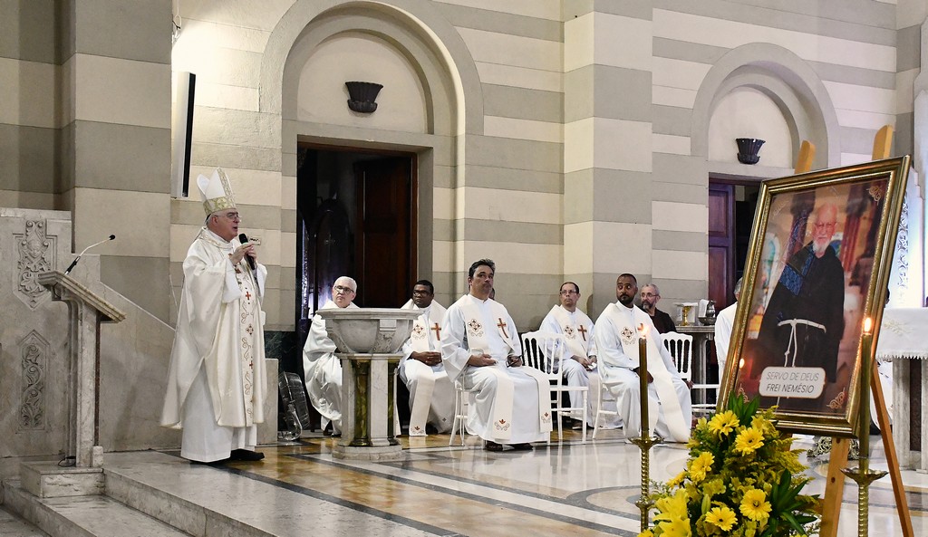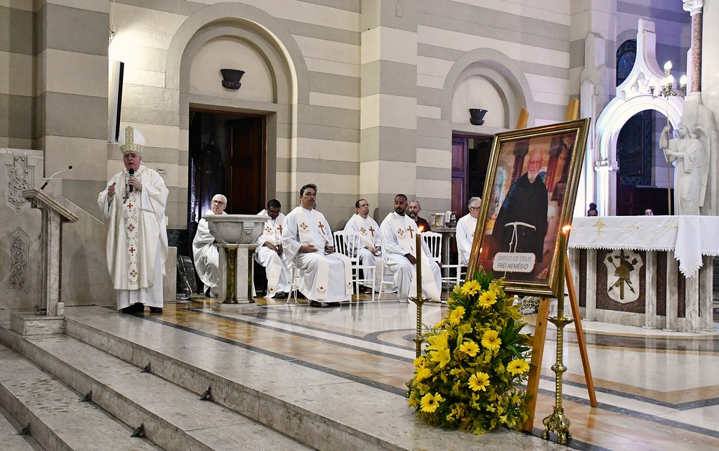 Na noite de quarta-feira, 4, o Santuário Basílica de São Sebastião (Igreja dos Capuchinhos), na Tijuca (RJ), celebrou com gratidão e esperança a Missa Solene em memória dos 10 anos do falecimento do Servo de Deus Frei Nemésio Bernardi. A Eucaristia foi presidida por Dom Roberto Lopes e contou com a participação de frades da Província Nossa Senhora dos Anjos, reunindo fiéis que, com devoção, recordaram a vida e o testemunho deste querido capuchinho, marcado pela simplicidade, pela caridade e pela disponibilidade em servir.