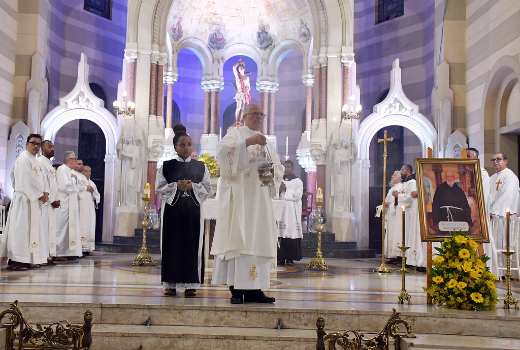 A história de Frei Nemésio é, em si, uma catequese de simplicidade que evangeliza. Nascido em Veranópolis (RS), em 9 de março de 1927, fez a profissão religiosa em 6 de janeiro de 1944. Anos depois, chegou ao Rio de Janeiro, em 1964, e por décadas serviu na vida fraterna do convento e no Santuário em tarefas discretas e essenciais: cuidou da hospedaria, ajudou na organização do cotidiano da fraternidade e, por muito tempo, também foi cozinheiro — sempre com espírito de serviço e coração disponível. Ordenado sacerdote em 21 de janeiro de 1984, tornou-se ainda mais conhecido pela incansável dedicação ao Sacramento da Reconciliação, atendendo confissões com paciência e zelo, além de interromper o que fosse necessário para levar bênçãos e conforto a doentes e famílias.