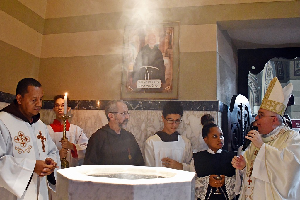 Frei Nemésio faleceu em 4 de fevereiro de 2016, deixando entre o povo uma lembrança viva de verdadeiro “pai espiritual”, especialmente por sua dedicação ao confessionário, pelas visitas aos enfermos e pelo acolhimento atento de quem sofria. A celebração desta noite coroou o Tríduo preparatório, vivido pela comunidade nos dias 1º, 2 e 3 de fevereiro, como um caminho de oração e ação de graças, renovando a confiança em Deus e a certeza de que a santidade se constrói nas pequenas fidelidades do dia a dia.