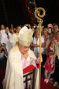 “Ao passarem pela Porta Santa da Catedral e das demais portas dos santuários da Arquidiocese muitas pessoas adentraram a Porta que é Jesus; receberam o perdão pelo sacramento da penitência, da Eucaristia; lucraram as indulgências; fizeram belíssimas experiências da Misericórdia de Deus ao realizarem peregrinações, e por isso queremos agradecer. (…) Iniciamos também o Ano Mariano em âmbito diocesano e temos aqui a imagem peregrina de Nossa Senhora Aparecida para lembrarmos que, peregrinos como Maria, devemos fazer a vontade do Pai em nossas famílias, em nossas comunidades e em nossa Arquidiocese”, ressaltou Cardeal Tempesta durante a homilia.