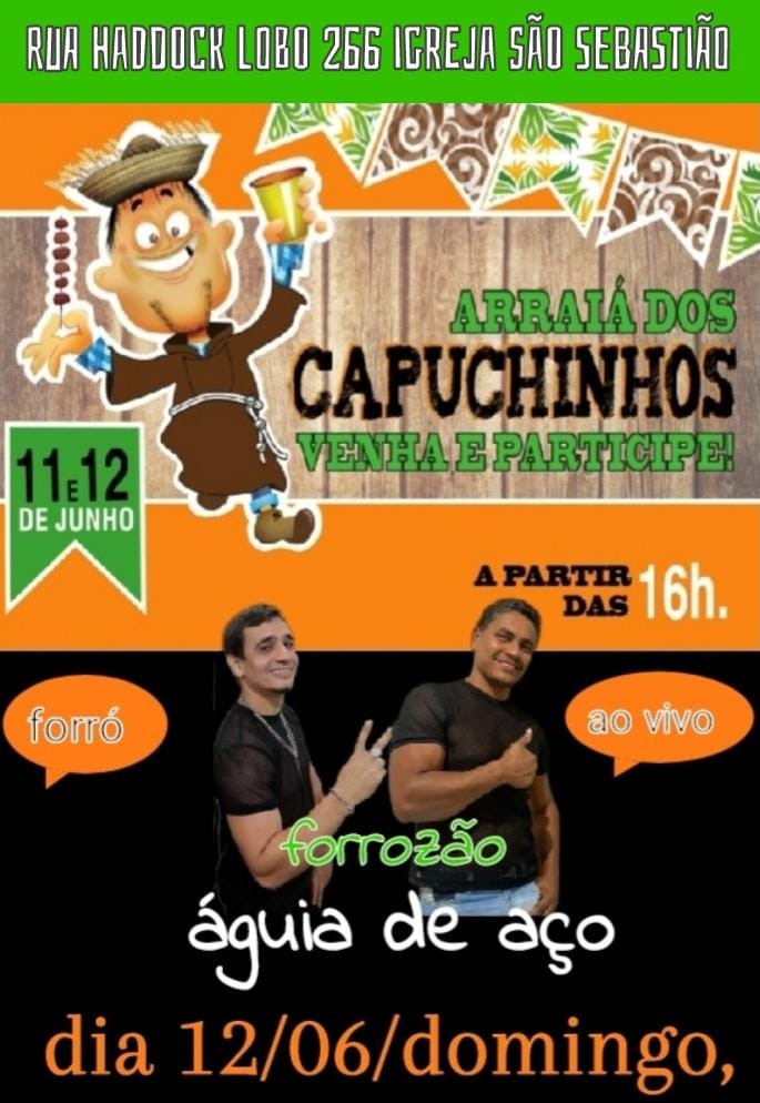 Hoje é o último dia do Arraiá dos Capuchinhos. As têm se mobilizado para manter sempre tudo organizado, principalmente nos sabores das comidas típicas que são oferecidas ao público. A animação acontece partir das 16h. São dois dias de muita diversão, comida gostosa, barraquinhas diversas e música ao vivo. Tudo o que não pode faltar numa festa caipira, você tem à disposição: música ao vivo com a animação da banda Forrozão Águia de Aço. Tem também, barraca de artesanato, pula-pula, pescaria, comidas típicas como canjica, pastel frito, salsichão, bolos diversos, caldos, cachorro quente, etc. Venha e traga a família. É diversão garantida e muita comida gostosa, com certeza!