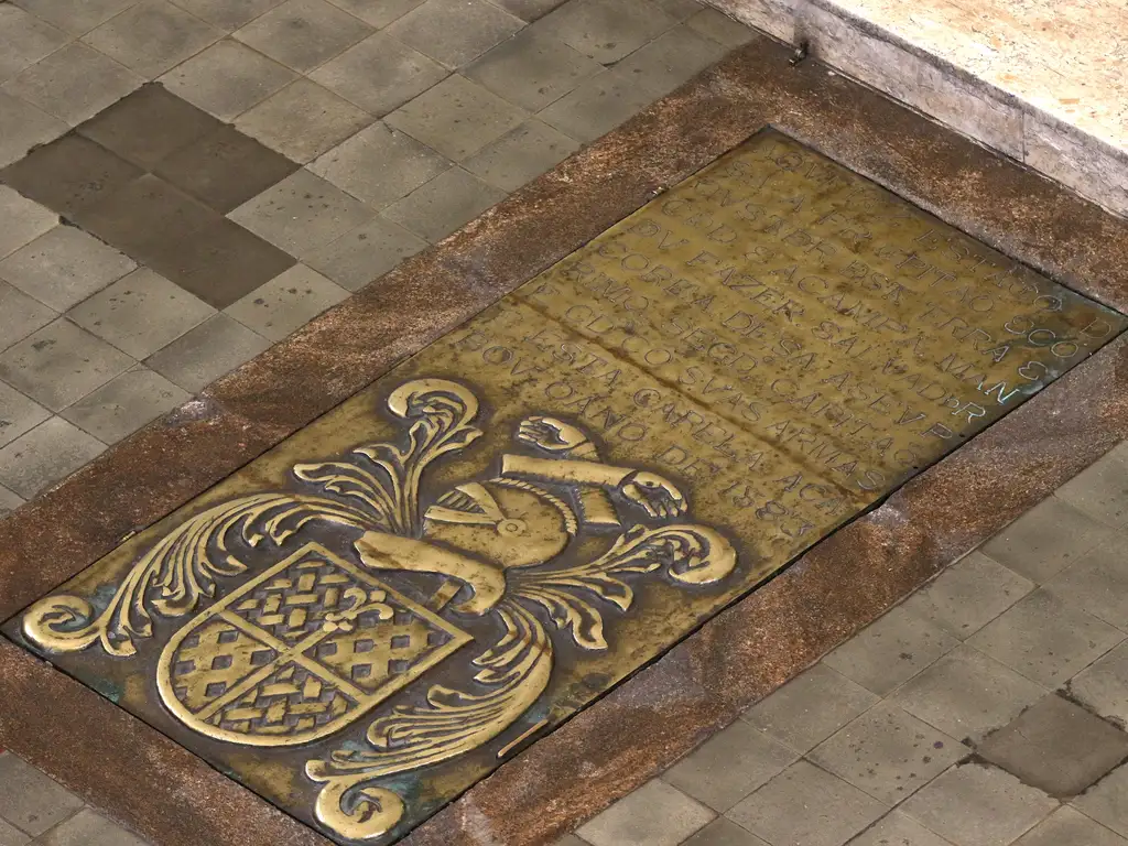 “Aqui jaz Estacio de Saa prº capitão e cõqvístador desta terra e cidade e a campa mãdov fazer Salvador Corea de Saa sev primo segdº capitão e glrº com svas armas e esta capella acabov o ano de 1583”.