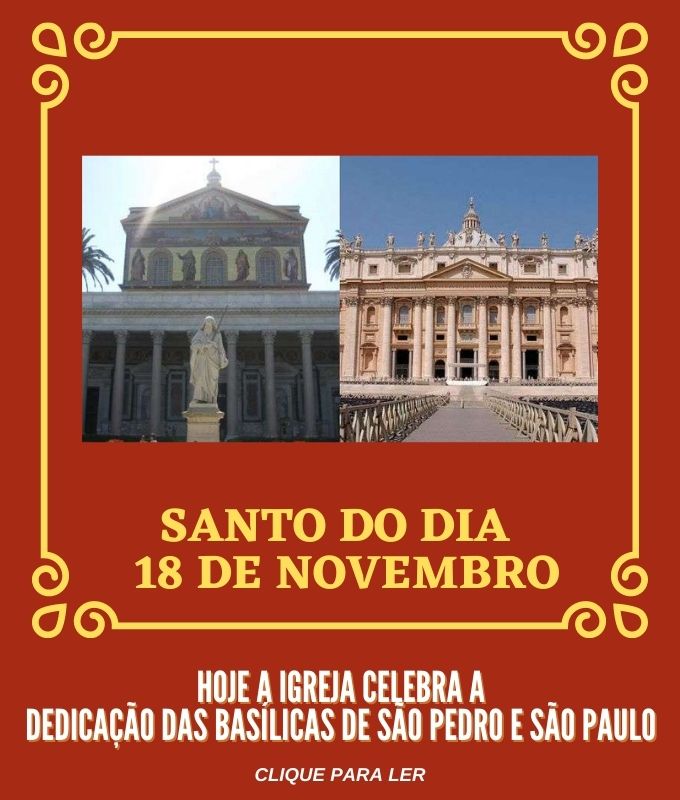 Hoje a Igreja celebra a dedicação das Basílicas de São Pedro e São Paulo
