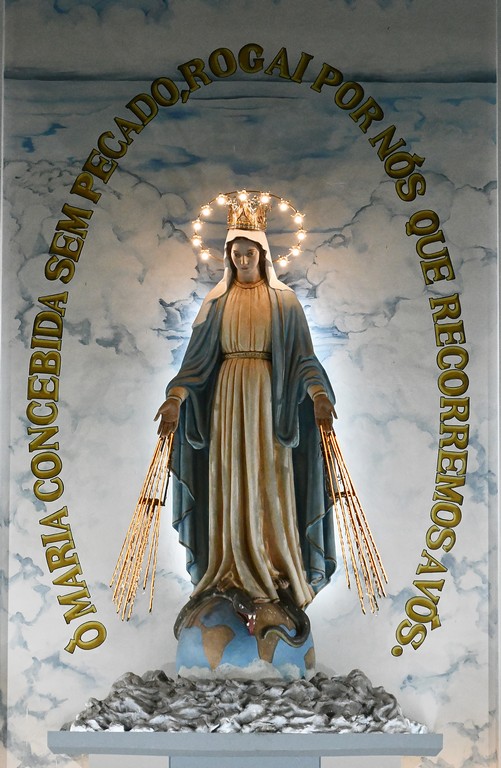 Nesse momento, formou-se um quadro oval em torno de Nossa Senhora, com as seguintes palavras em letras douradas: “Ó Maria concebida sem pecado, rogai por nós que recorremos a Vós”.