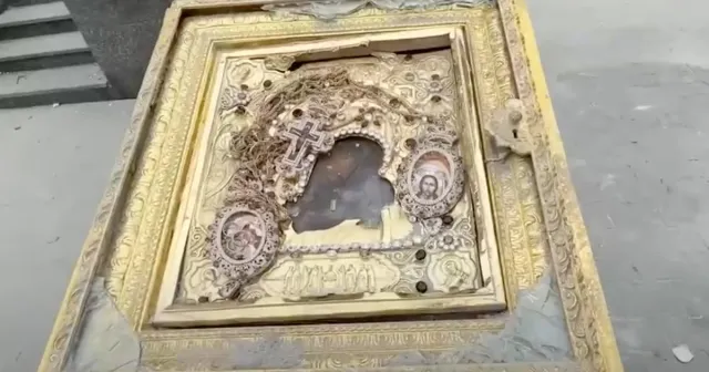 Há vários dias, os moradores tentam limpar o local. Nas ruínas, ícones crivados de estilhaços jazem no chão, pinturas de parede rasgadas revelam a estrutura de concreto e metal… E é nesses escombros que os paroquianos encontraram o ícone da Mãe de Deus chamado “Kasperova”.