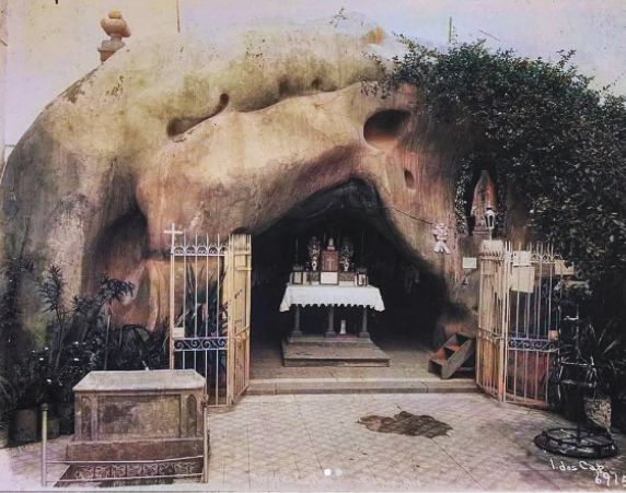 Gruta construída no Morro do Castelo, ao lado da Igreja de São Sebastião (igreja dos Capuchinhos) em homenagem à Nossa Senhora de Lourdes. Fotografia de Augusto Malta de 02 Maço de 1919.