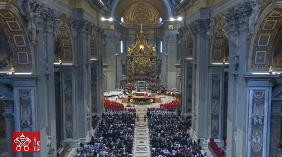 “Nos Atos dos Apóstolos, lê-se que, após a ascensão de Cristo ao céu e enquanto aguardavam o dia de Pentecostes, todos perseveravam unidos em oração com Maria, a Mãe de Jesus (cf. At 1,14). É exatamente isso o que nós também estamos fazendo, a poucas horas do início do Conclave, sob o olhar da Virgem Maria, colocada ao lado do altar nesta Basílica que se ergue sobre o túmulo do Apóstolo Pedro.”