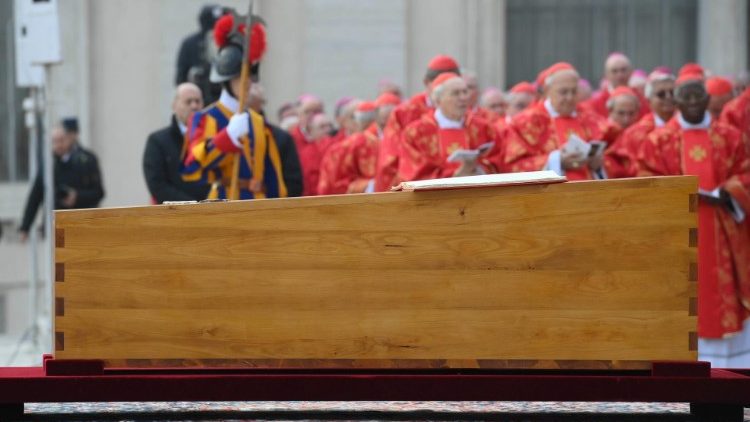 As imagens remetem a abril de 2005, quando o mundo se despediu de São João Paulo II: o caixão de madeira, simples, posicionado diante do altar, sobre o qual foi apoiado o Evangelho aberto. Ao ser depositado no chão, recebeu um beijo do seu então secretário particular Dom Georg Gänswein. Estima-se que cerca de 50 mil pessoas participaram do funeral, entre as quais inúmeras autoridades e chefes de Estado. Celebraram com o Pontífice, além do cardeal-decano Giovanni Battista Re no altar, mais de 120 cardeais, 400 bispos e quase quatro mil sacerdotes.