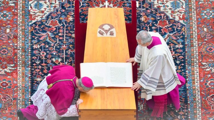 Francisco nomeou Bento uma única vez, no final, mas as referências são extraídas de textos do Papa emérito: a Encíclica “Deus caritas est”, a homilia na Missa Crismal de 2006 e a missa do início do seu pontificado.