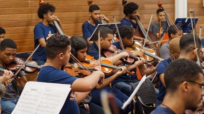 As crianças que se destacam são encaminhadas para duas escolas onde o projeto tem “as orquestras infantis”. “Dessas, aquelas que respondem e perseveram são chamados para vir para nossa sede e aqui começam a ganhar uma bolsa e são convidados para fazer o curso do Suzuki e passam a ser monitores transformadores da comunidade”, disse Prazeres.