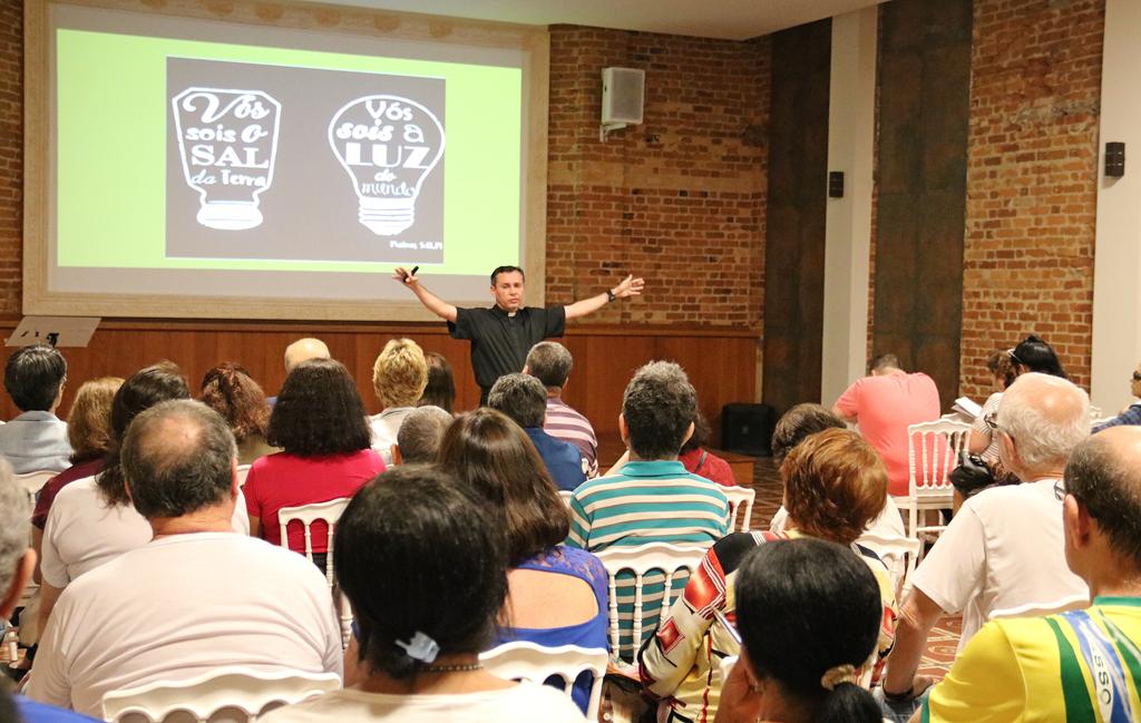 Teve início na noite de ontem a Semana de Formação Litúrgica – de 2 a 6 de julho –, com apresentação do primeiro convidado, padre Aldo de Souto Santos, vigário episcopal do Vicariato Norte, que apresentou brilhante palestra que teve como tema “O protagonismo do Leigo na Igreja”, assunto que envolveu bastante os espectadores.
