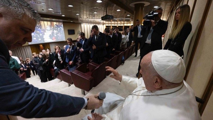 Ao final da projeção, Francisco tomou a palavra para recordar que “as guerras sempre são uma derrota”. “Nós, que vimos esta crueldade, este povo que defende a sua identidade, devemos estar próximos a tamanho sofrimento e rezar por este povo, rezar para que venha a paz.”
