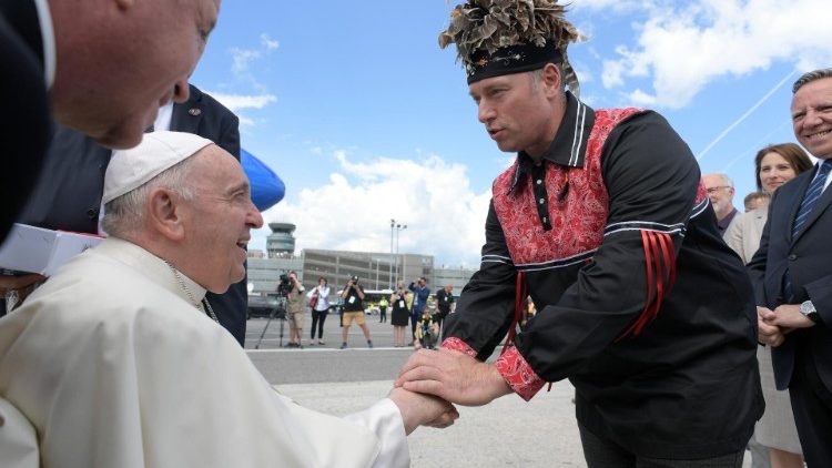 Francisco na primeira parte da sua “peregrinação penitencial”, já no seu primeiro discurso em Edmonton disse que “estou aqui porque o primeiro passo desta peregrinação penitencial entre vós é renovar meu pedido de perdão e dizer-vos, de todo o coração, que estou profundamente entristecido: peço perdão pelas formas como, infelizmente, muitos cristãos apoiaram a mentalidade colonizadora das potências que oprimiram os povos indígenas. Estou entristecido. Peço perdão, em particular, pelas formas como muitos membros da Igreja e das comunidades religiosas cooperaram, mesmo por indiferença, naqueles projetos de destruição cultural e assimilação forçada dos governos da época, culminando no sistema de escolas residenciais.”