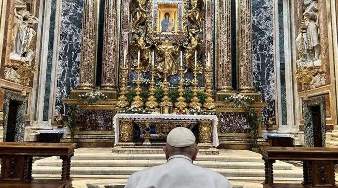 Papa visitou a basílica mariana à tarde e rezou sozinho, como faz antes e depois de cada viagem apostólica internacional