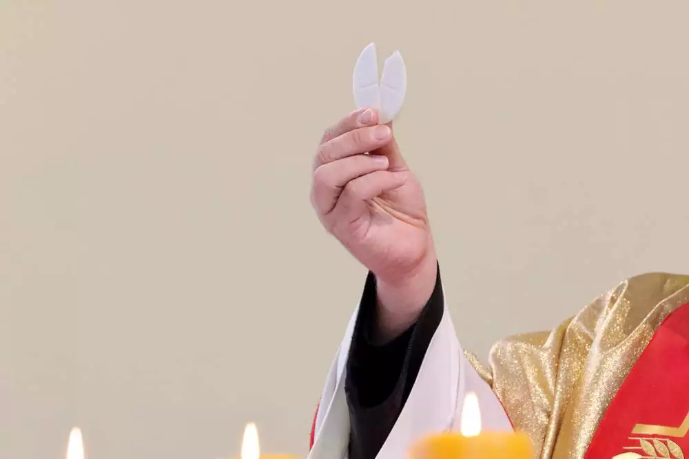 No Altar, o padre pega a hóstia maior, chamada hóstia magna, e fraciona esta hóstia para viver aquilo que Cristo tanto nos ensinou