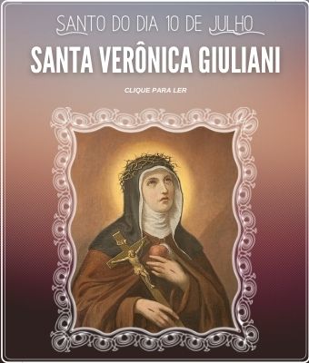 A vida de Santa Verônica foi regada de espiritualidade. Entregou-se toda ao amor do coração do Cristo, sofrendo por ele inúmeras provações. Também tinha intenso amor ao coração de Maria. Uniu, numa vida reclusa, o amor de Cristo e a presença da Virgem Maria, numa disponibilidade absoluta a vontade de Deus. Que o exemplo de Santa Verônica nos leve também a buscar o amor de Deus em nossa vida.