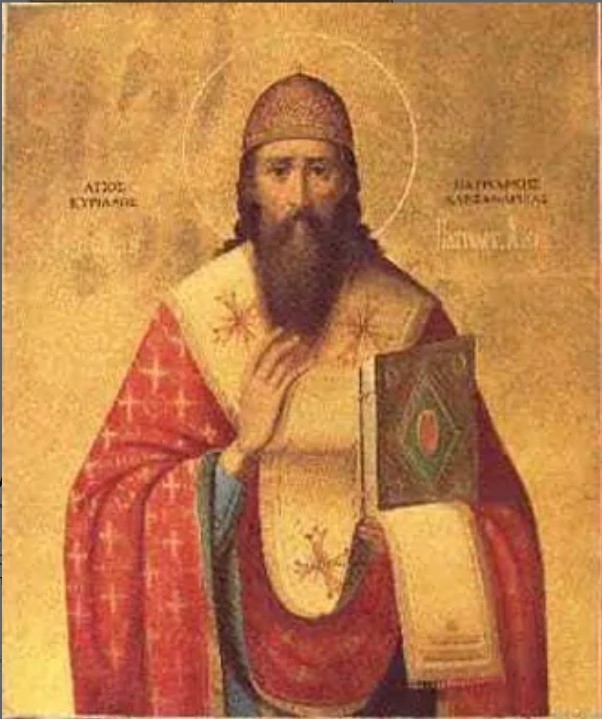 São Cirilo de Alexandria, nasceu no ano de 370, no Egito. Sobrinho de Teófilo, bispo de Alexandria, assumiu a diocese em 412, após a morte do tio. Governou a diocese até o ano 444, data do seu falecimento.