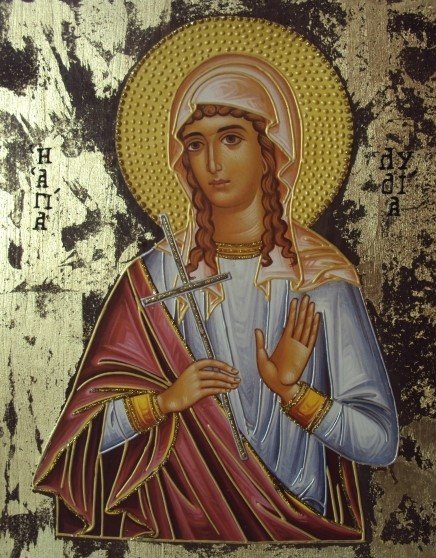 Padroeira dos tintureiros e comerciantes. Primeira mulher a se fazer cristã na Europa e uma das primeiras aclamadas santas e veneradas desde o início do cristianismo. Filha espiritual de São Paulo e seus companheiros Lucas, Timóteo e Silas.