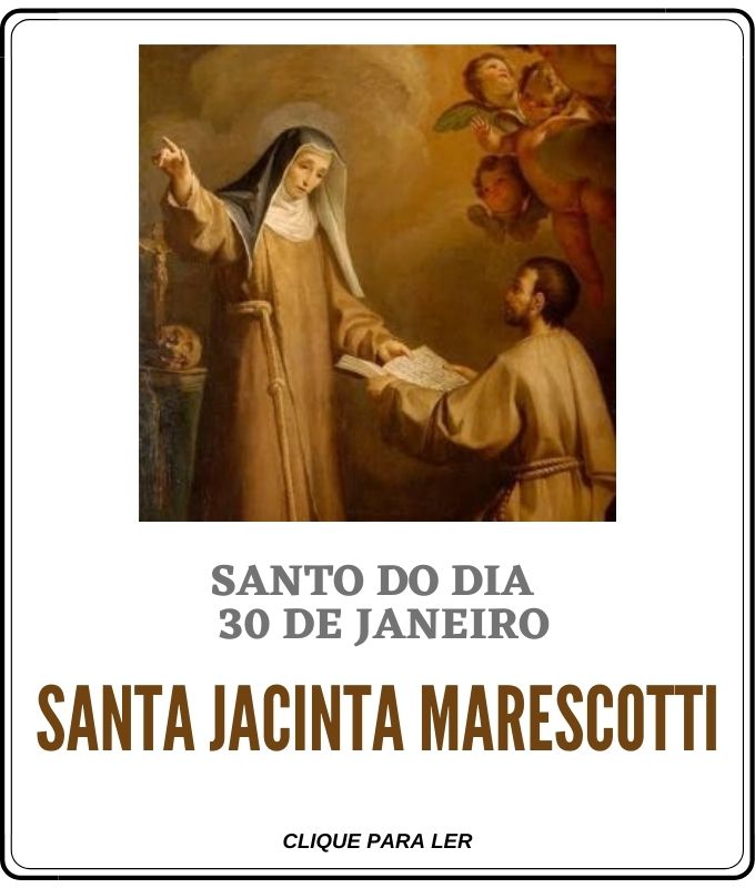 Ó Deus, que prometestes habitar nos corações puros, dai-nos, pela intercessão de Santa Jacinta de Marescotti, viver de tal modo que possais fazer em nós a vossa morada. Por Cristo nosso Senhor. Amém!