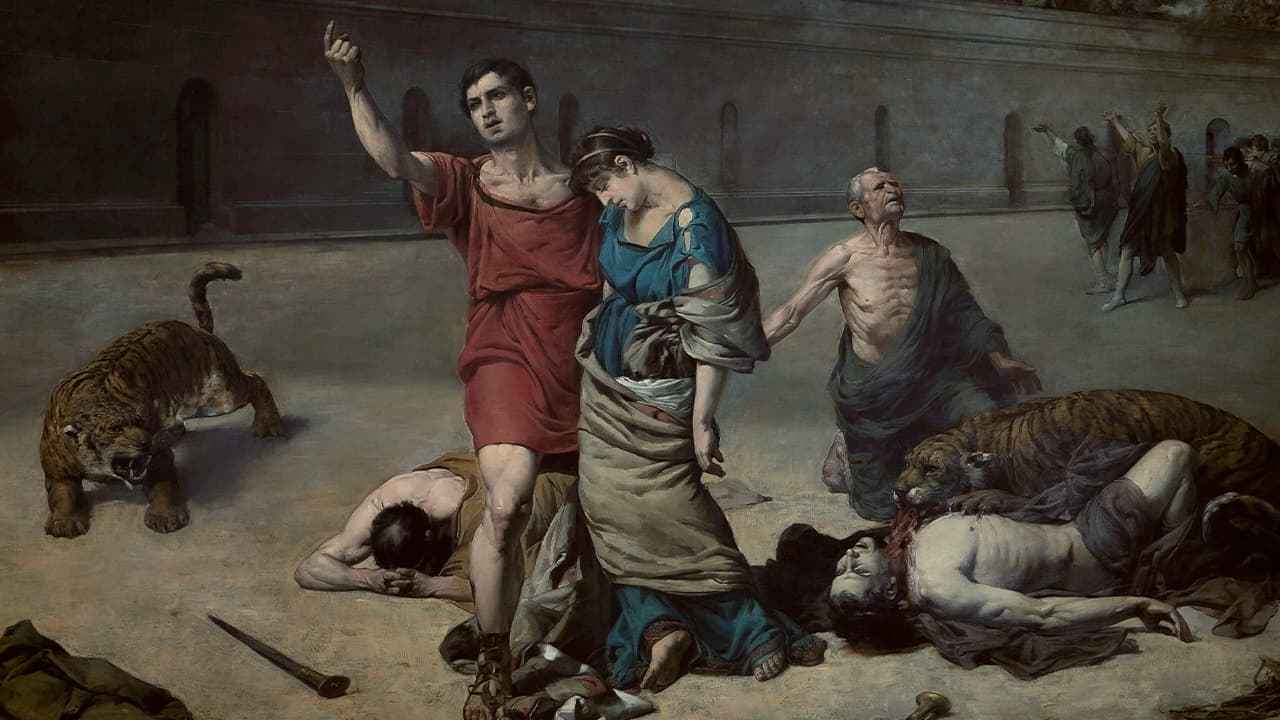 A ferocidade com a qual Nero golpeou os inocentes cristãos (o incêndio tinha sido provocado por sua ordem com o fim de reconstruir Roma com base num grandioso projeto) não encontra obviamente a justificação do supremo interesse do império. Aqueles pacíficos crentes em Cristo não constituíam ameaça. A selvageria usada contra eles foi tal que provocou horror e piedade nos próprios espectadores do circo.