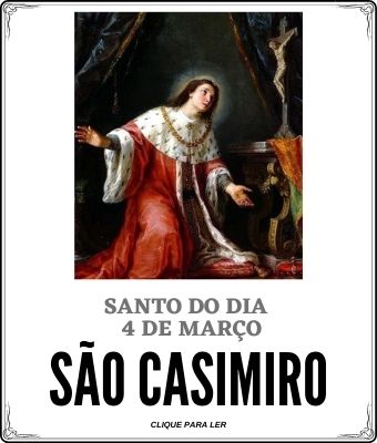 Casimiro, cujo nome significa “grande no comandar”, foi proclamado padroeiro da juventude. Casimiro era filho do rei da Polônia, nasceu com o título de grão-duque da Lituânia, sua terra natal, em 1458. De família real e Católica, Casimiro podia se envolver em confusões políticas, por isso renunciou o direito ao trono. Seus pais, a rainha Isabel de Asburgo e Casimiro IV, rei da Polônia, tiveram treze filhos, dos quais doze foram reis.