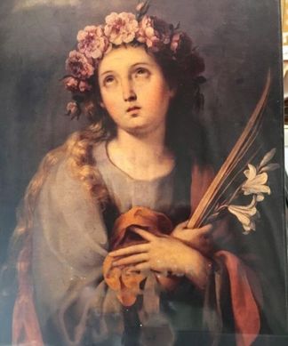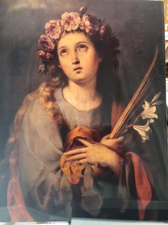 Santa Rosália foi uma nobre virgem e eremita do século XII, muito venerada em toda a Sicília e em Palermo (Itália), cidade da qual é padroeira. Seu nome em latim significa “Grinalda de rosas”.