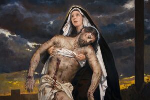 A sensibilidade de piedosa compaixão do povo cristão está eloquentemente expressa no quadro da Pietá. Nossa Senhora das Dores recebe no colo o filho morto apenas tirado da cruz. É o momento que se reveste da incomensurável dor uma paixão humana e espiritual única: a conclusão do sacrifício de Jesus Cristo, cuja morte sobre a cruz é o ponto culminante da Redenção.