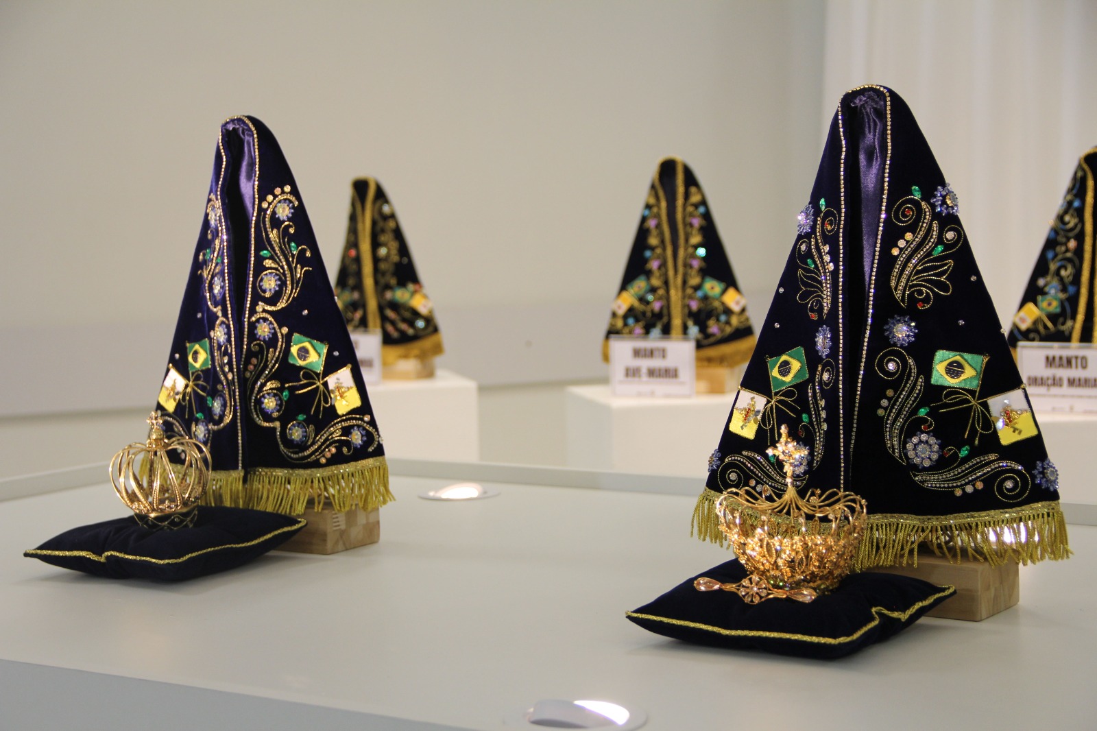 O Santuário Nacional de Aparecida apresentou ontem (26) os mantos de Nossa Senhora Aparecida que serão usados na Festa da Padroeira 2024, que vai de 3 a 12 de outubro, e tem como tema “Mãe Aparecida, acolhei-nos como peregrinos da esperança”. Os mantos foram feitos pelas irmãs do Carmelo de Santa Teresinha.