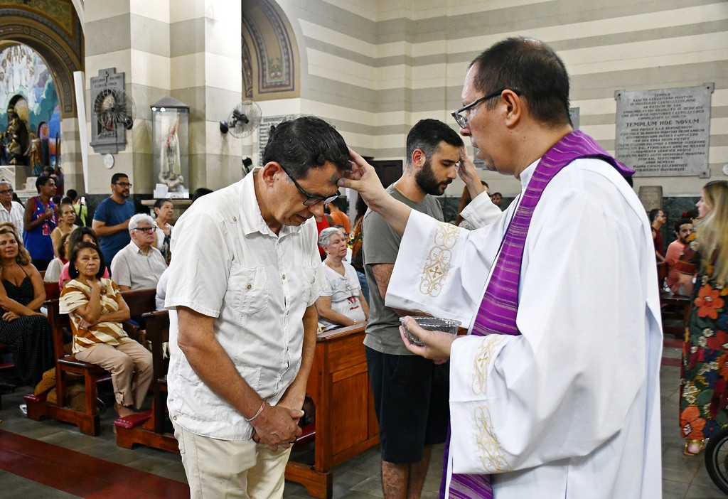 Na missa das 18h, a Eucaristia foi celebrada por Frei Ricardo Figueredo Assis, em comunhão com toda a assembleia, que recebeu as cinzas e renovou o propósito de viver a Quaresma com mais profundidade, oração e compromisso com o bem.