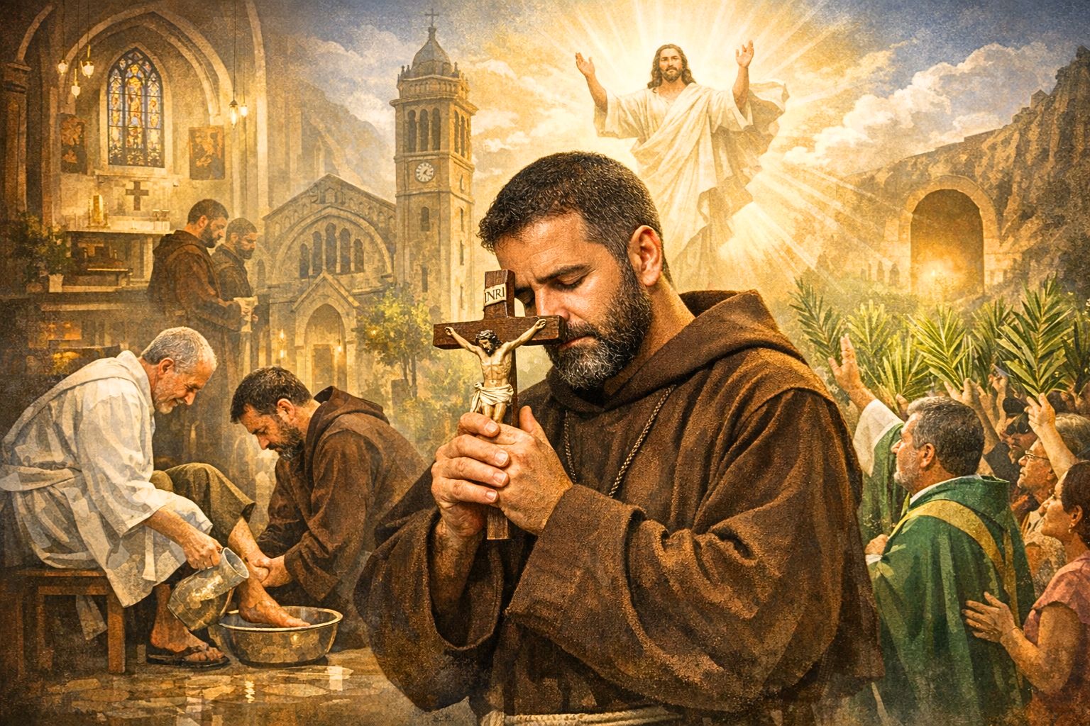 Na espiritualidade franciscana-capuchinha, a Semana Santa é marcada pela contemplação de Cristo pobre, humilde e crucificado, tão próximo de quem sofre. As celebrações recordam que a Cruz não é sinal de derrota, mas de amor vivido até o fim, e que a Ressurreição ilumina o caminho da Igreja e dá sentido à entrega de Jesus.