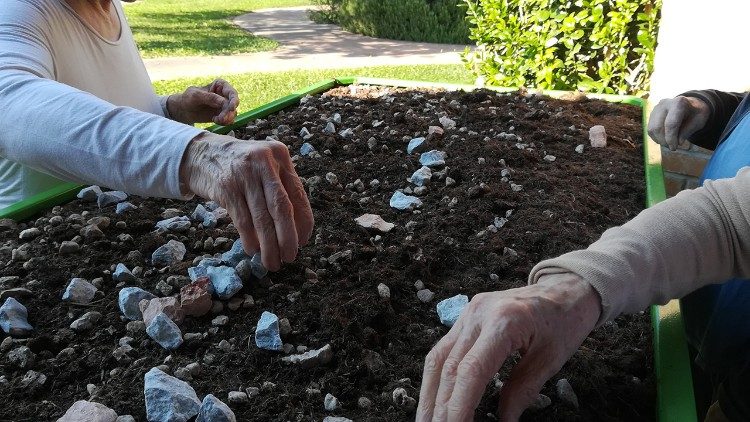 “Pensando nesses Jardins – acrescenta padre Roberto – tenho a imagem da natureza como um ventre que acolhe e gera vida e não posso deixar de pensar no que o Papa Francisco nos diz na encíclica Laudato si’. O homem é por si mesmo parte da natureza. Às vezes pensamos na natureza como algo alheio ao homem, do qual o homem é um espectador, mas não nos esqueçamos de que cada um de nós faz parte desse amor criativo de Deus que dá vida a todas as coisas. Portanto, no texto do Pontífice, realmente encontramos a explicação teologal que nos permite compreender essa conexão e explicar, além das percepções psicológicas, botânicas e terapêuticas, a partir de uma perspectiva teológica, por que isso acontece. Por meio da natureza, podemos cuidar dos doentes que muitas vezes são esquecidos ou confiados apenas aos cuidados amorosos, mas exaustivos, dos membros da família. Aqui no Centro Madre Teresa, vemos essa união vitoriosa entre o homem e o meio ambiente, da qual fala o Santo Padre, se concretizar, a ponto de evidenciar uma cura”. “Cuidado, fragilidade e comunidade”, ressalta o Dr. Melendugno, são as três palavras-chave que emergem de nosso projeto e que se baseiam diretamente na encíclica do Papa Francisco. E quando falamos de comunidade, não estamos nos referindo apenas à comunidade de pessoas, mas também à comunidade de plantas. As plantas dos Jardins Terapêuticos devem ser capazes de coexistir umas com as outras e proporcionar aos nossos hóspedes um ambiente favorável, capaz de dialogar e interagir com eles, para curá-los e beneficiá-los”.
