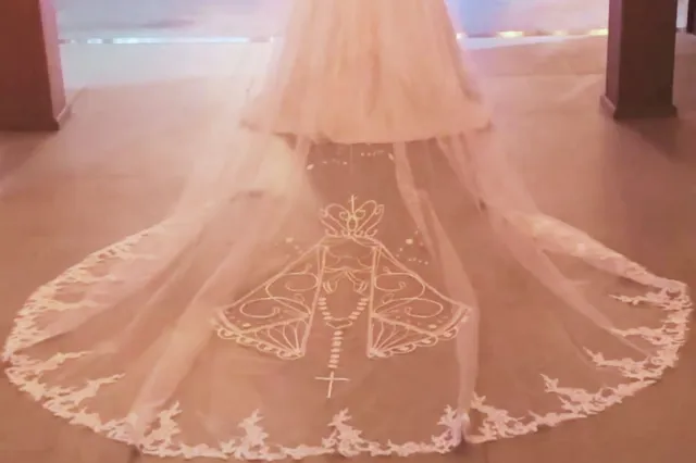 O sonho da noiva foi um desafio para as estilistas. Há mais de 30 anos confeccionando vestidos de noiva, dona Célia Martins nunca tinha bordado a imagem de Nossa Senhora em um véu. Mas ela e a filha, Cláudia Martins Braga, que têm um ateliê no sul do Brasil, dispuseram-se a realizar o sonho de Leila.